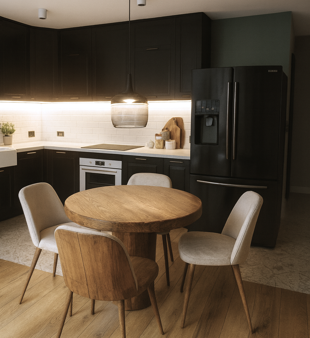 Odpowiednio zaprojektowana czarna kuchnia nie przytłacza — przeciwnie. Zyskuje głębię i charakter.