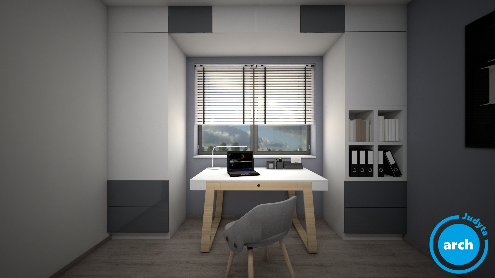 010. domowe biuro, drewno, bialy, szary, polysk, mat, home office, wood, white, grey, gloss, matt