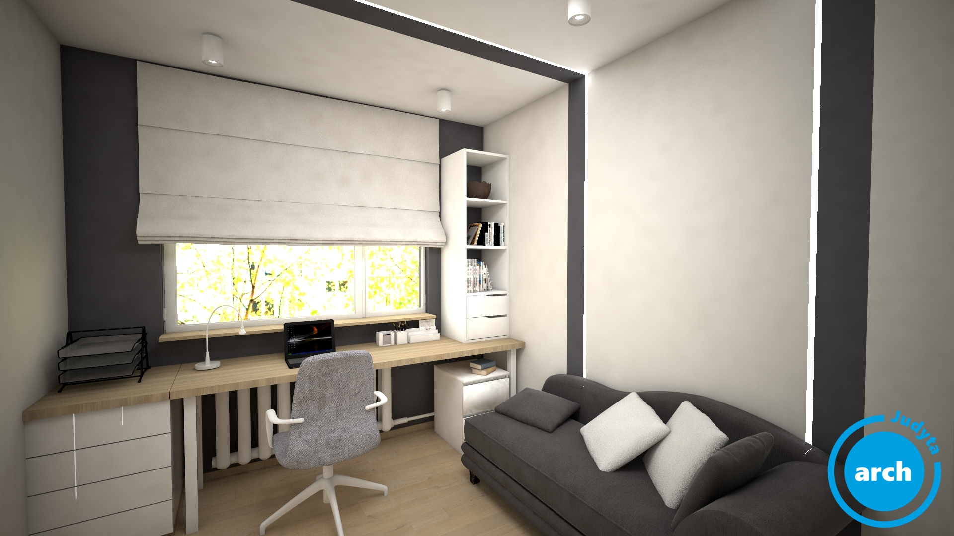 011. domowe biuro, drewno, bialy, szary, polysk, mat, home office, wood, white, grey, gloss, matt