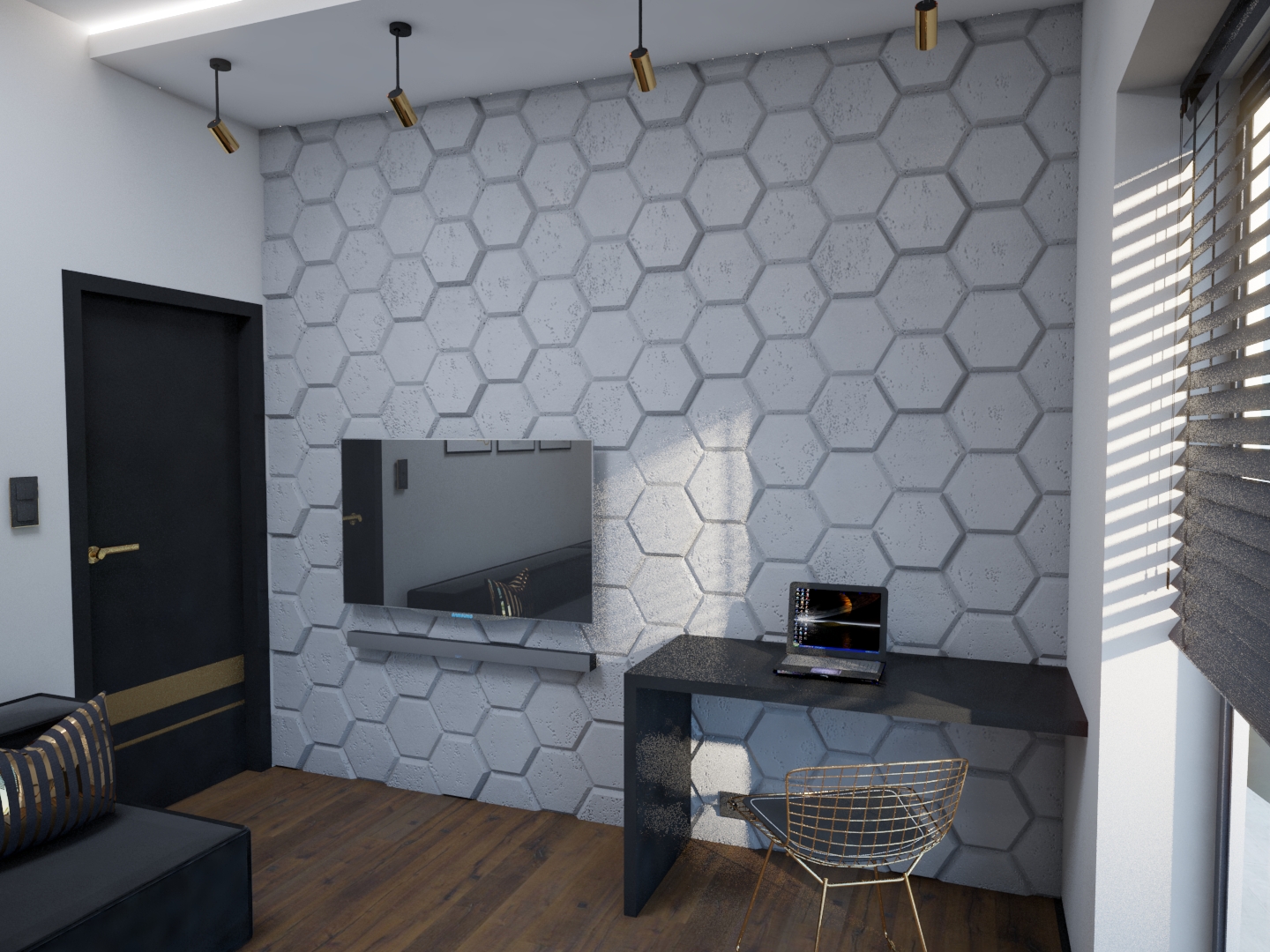 019.-domowe-biuro-beton-hexagony-zloto-drewno-biel-lamele