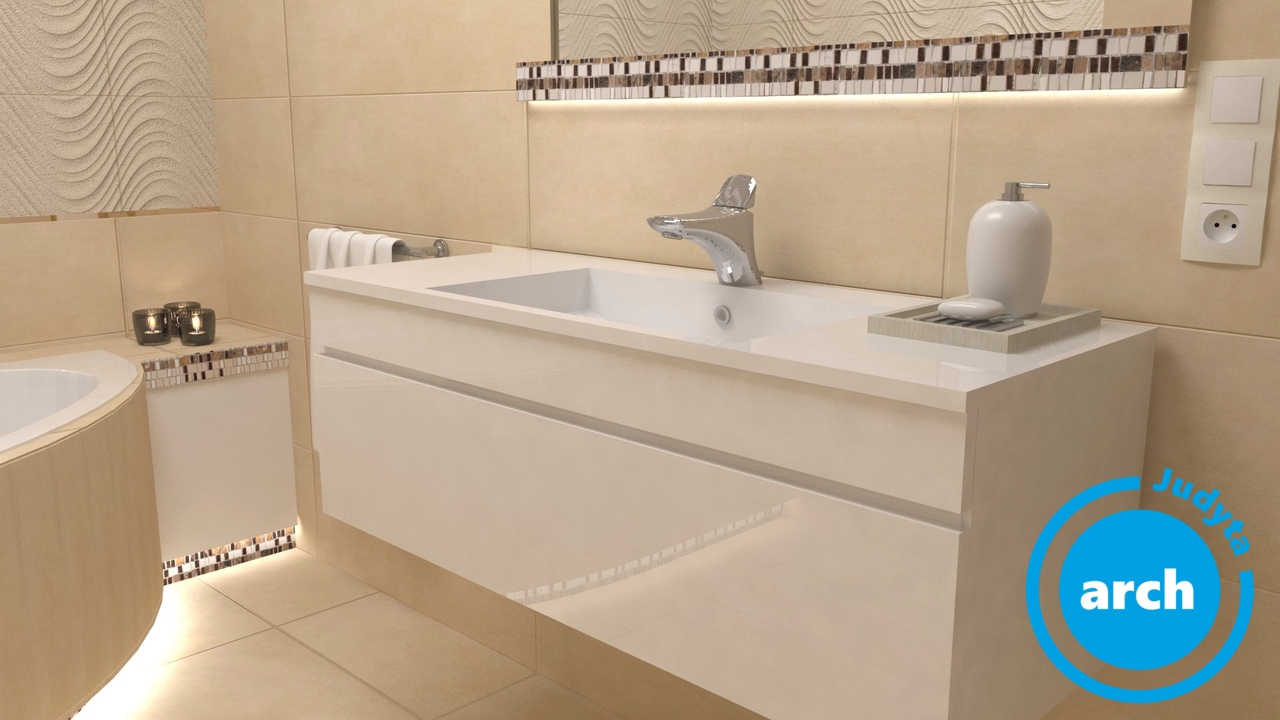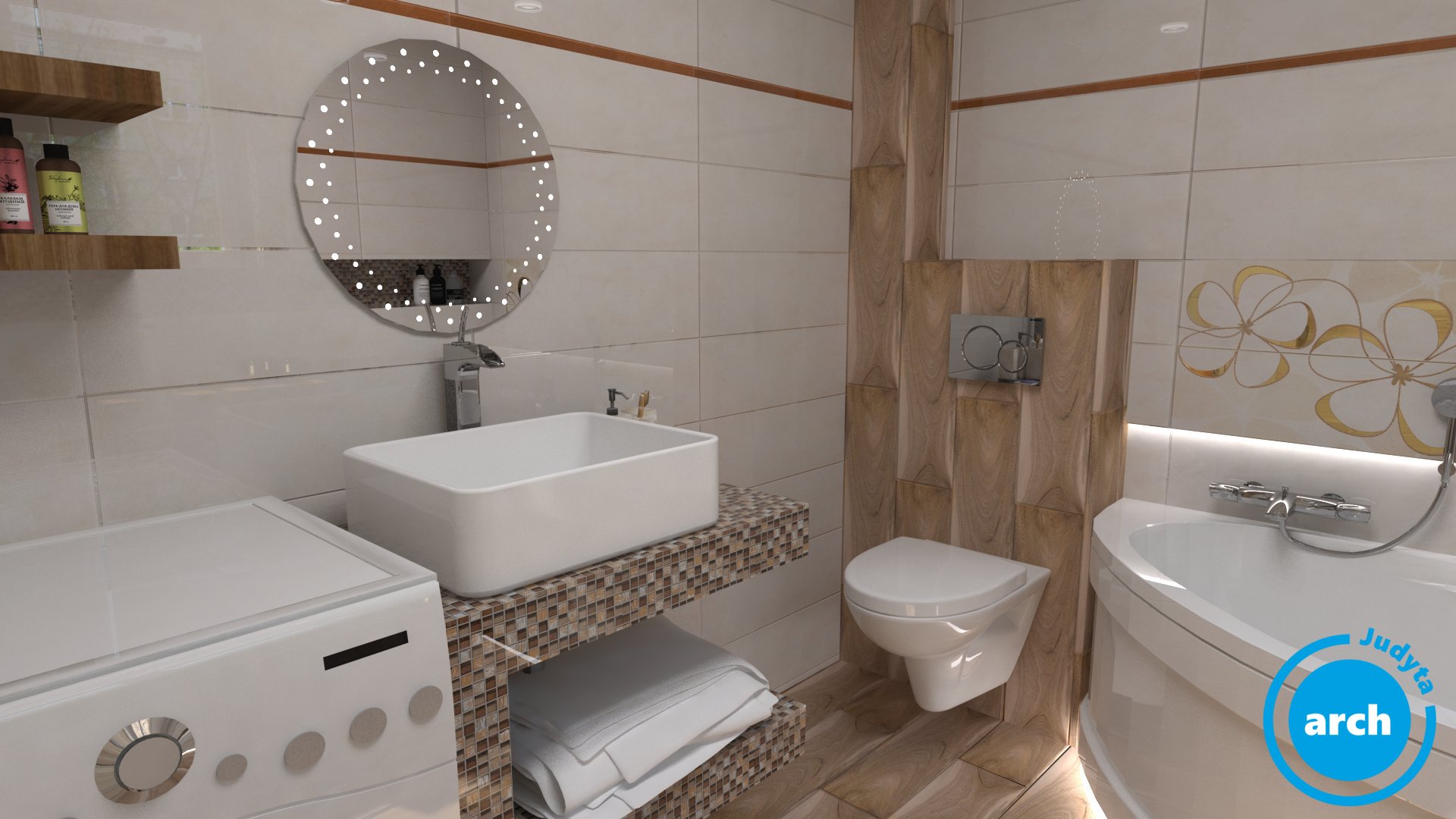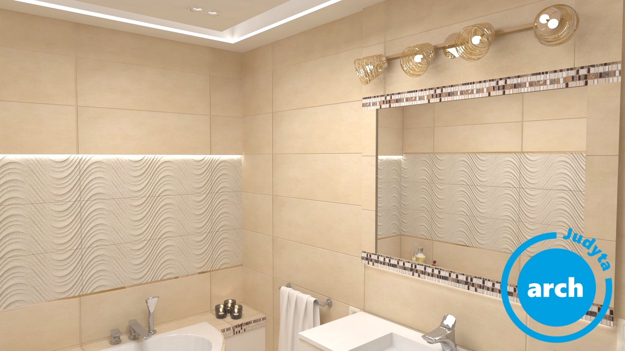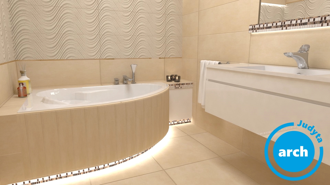 0079. łazienka kremowo brązowa z mozaiką bathroom cream and brown