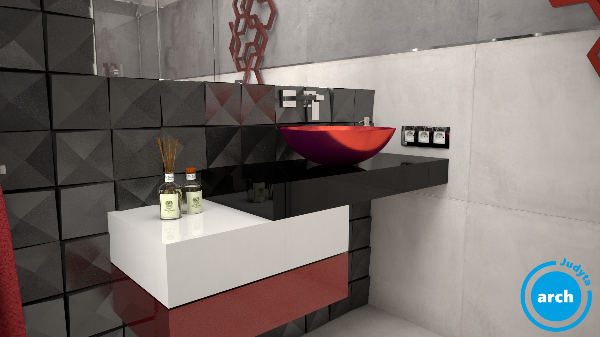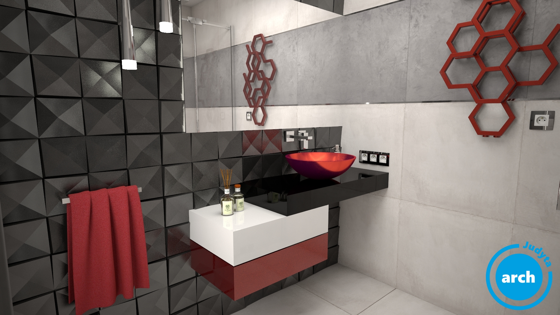 123. lazienka mala szary czarny czerwony bez small bathroom grey black red beige
