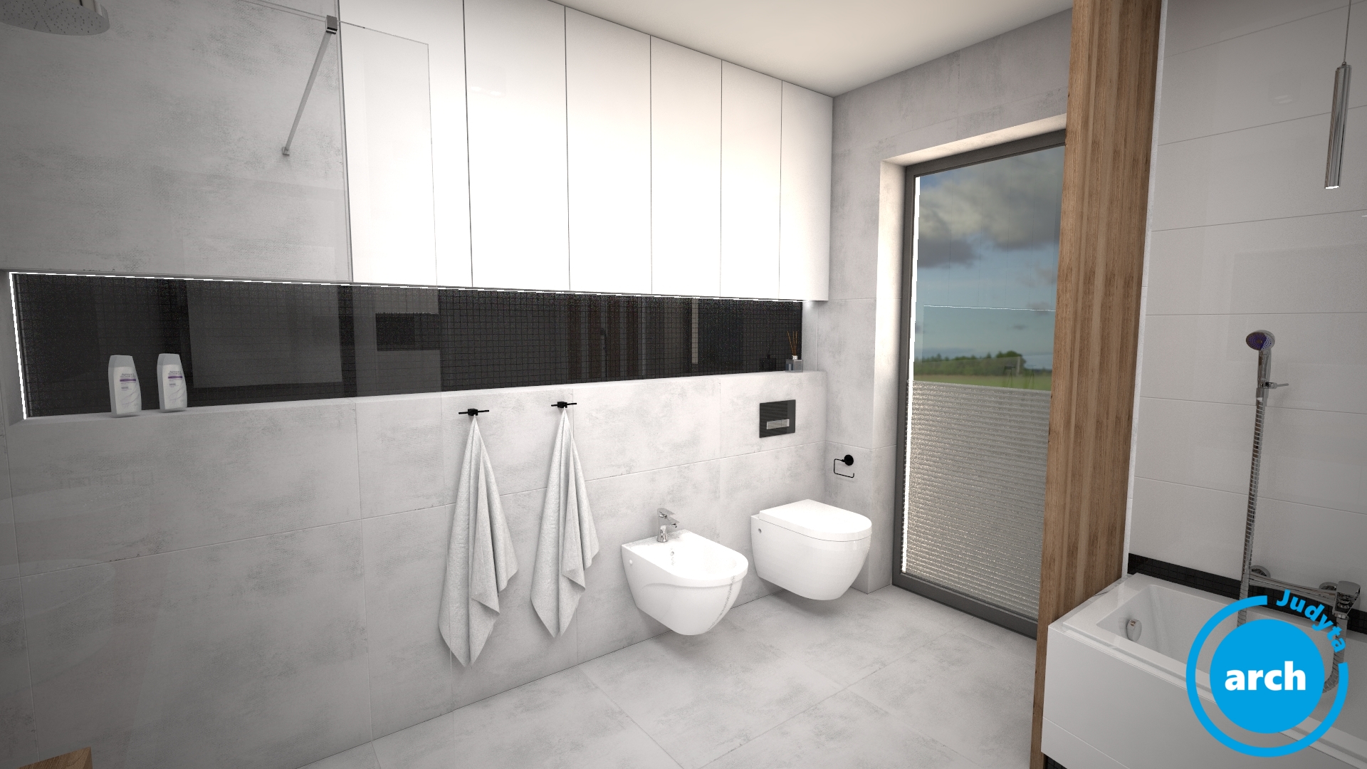 0096  lazienka w szarościach i bielach z czarna armatura bathroom grey and white with black sink