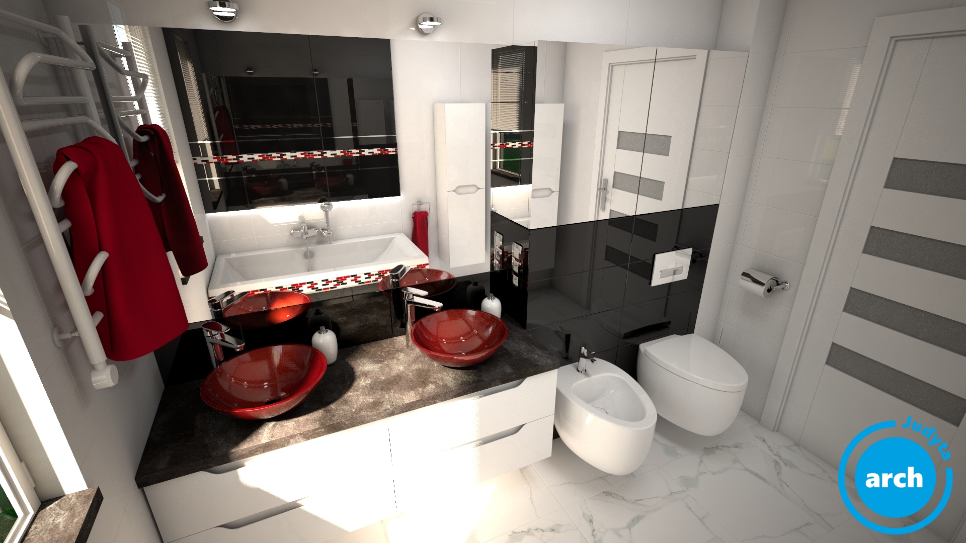 189.-lazienka-czarno-biala-z-czerwona-moazika-i-czerwonymi-szklanymi-umywalkami-bathroom-black-and-white-and-red-mosaic-and-red-sink