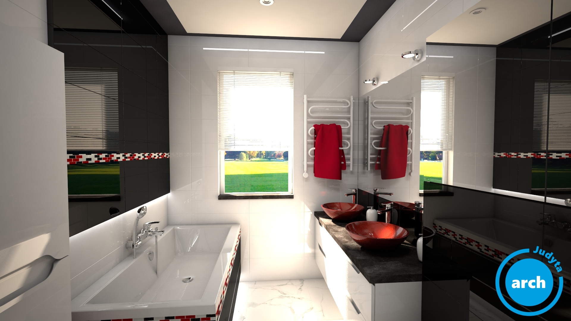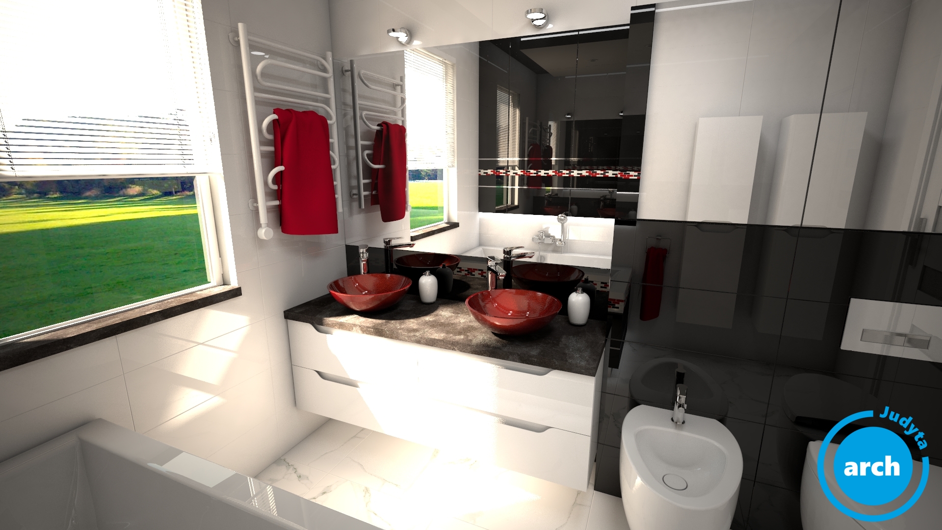 190.-lazienka-czarno-biala-z-czerwona-moazika-i-czerwonymi-szklanymi-umywalkami-bathroom-black-and-white-and-red-mosaic-and-red-sink