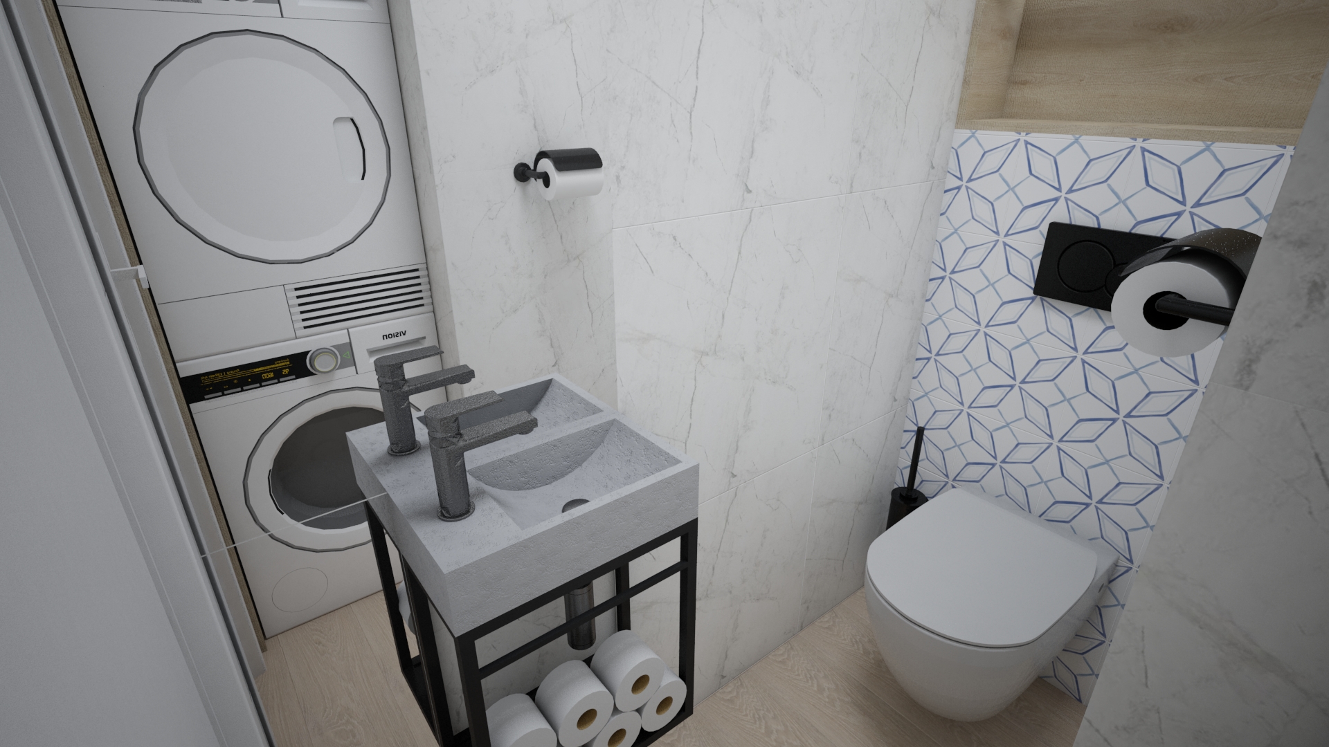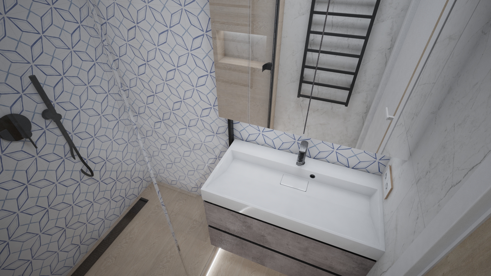 0106. lazienka szaro biala beton hexagon, bathroom grey white concrete