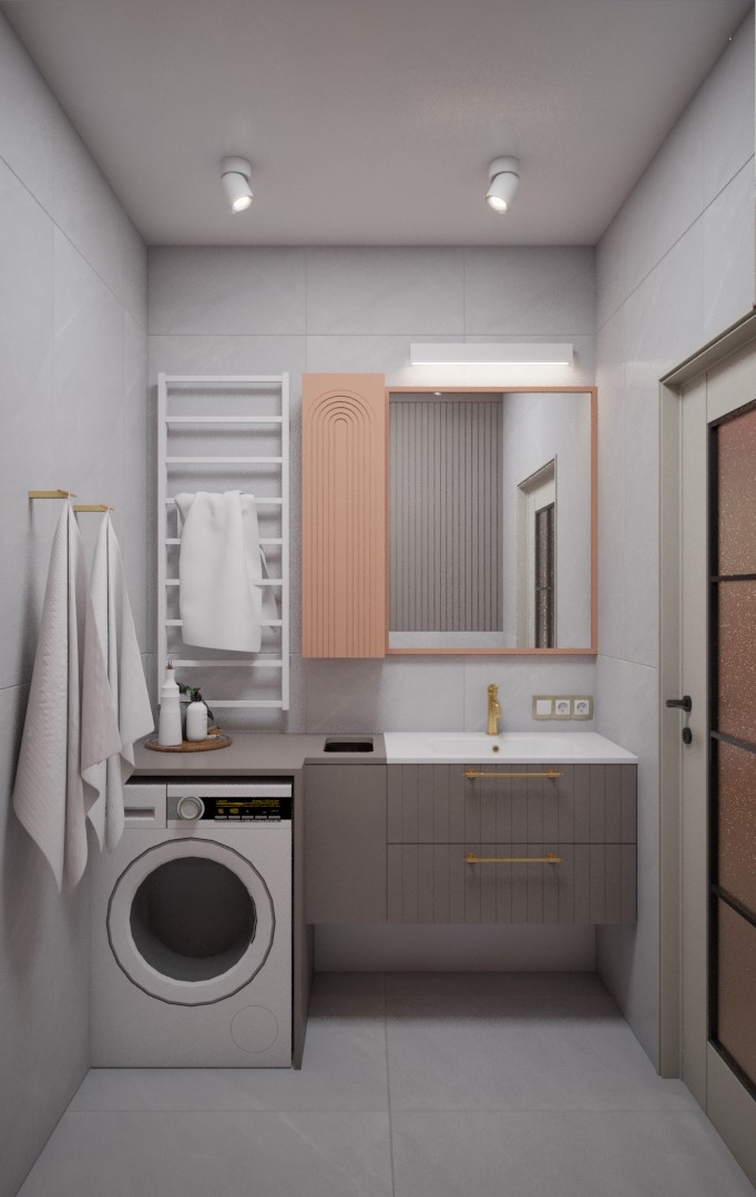 0097. lazienka w szarościach i bielach z czarna armatura bathroom grey and white with black sink