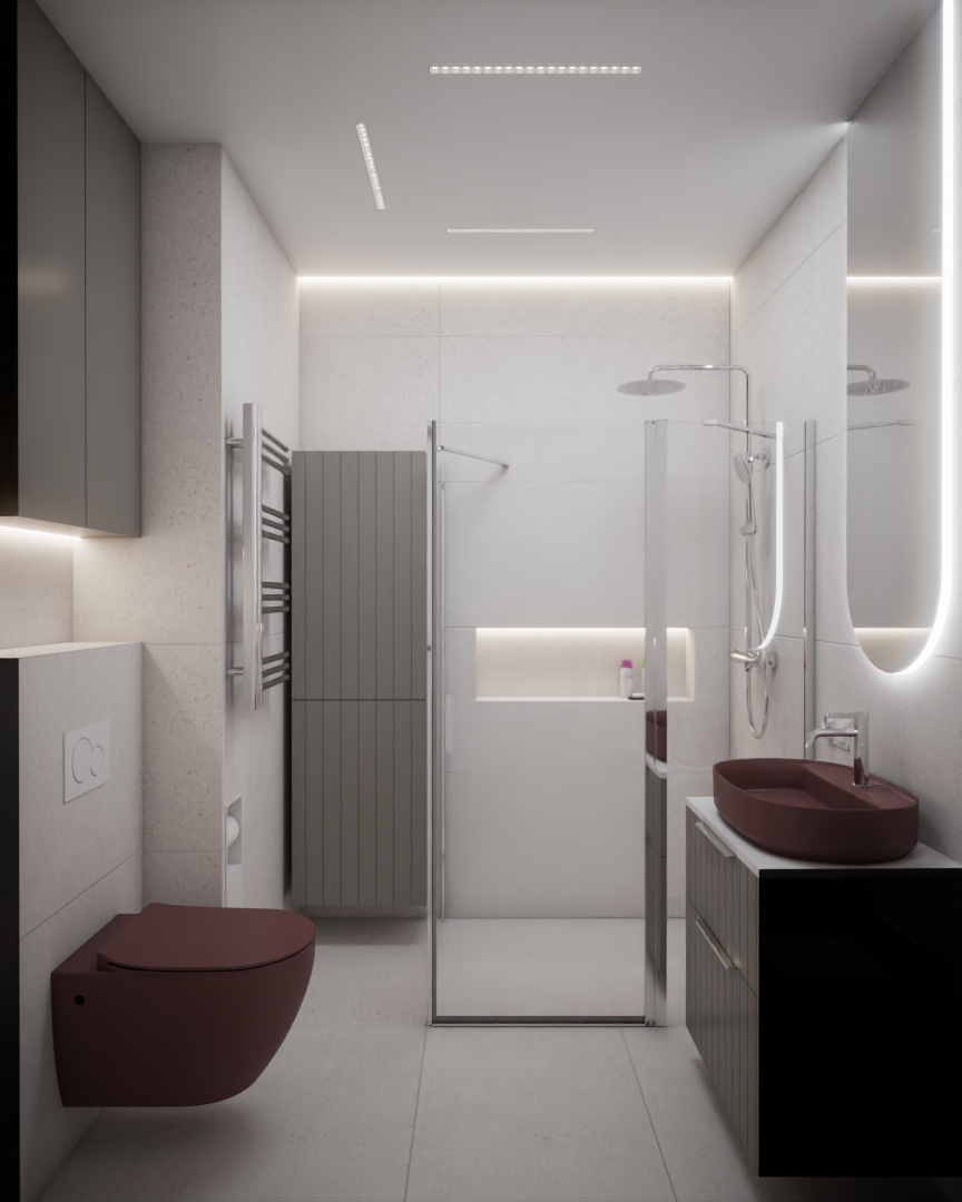 121. lazienka mala szary czarny czerwony bez small bathroom grey black red beige